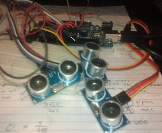 Pengaplikasian sensor ping banyak dijumpai dalam keseharian. Contoh untuk mobil jenis terbaru, banyak menggunakan sensor ping di bagian belakang mobil, gunanya untuk memberi indikator mobil dengan benda saat mengatret. Dalam robotika juga sering digunakan, untuk robot yang dilombakan, seperti robot pemadam api, robot berkaki biasa menggunakan banyak sensor ping sekaligus. Kali ini penulis mencoba membgi pengalaman untuk menggunakan dengan 3 sensor ping sekaligus. Contoh dari penggunaan 3 sensor ping ini penulis dapatkan dari situs: http://www.amazingtips247.co.uk/2014/12/turning-3-ledson-and-off-3-ultrasonic.html.