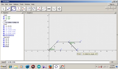 Untuk membuat suatu sudut bisa memilih tool angle, untuk sudut yang ditentukan bisa memilih tool angel with given size. Tinggal mengklik disuatu titik nantinya akan muncul klom untuk menentukan nilai sudut yang diinginkan. Terdapat dua pilihan dalam menu ini, yaitu counter clockwise untuk sudut dengan arah berlawanan arah jarum jam atau sebailknya yang searah (clockwise)